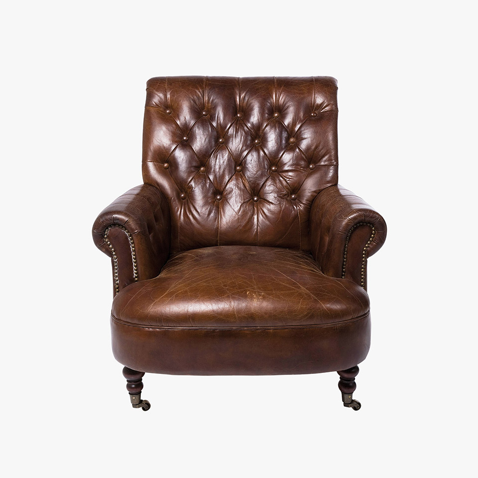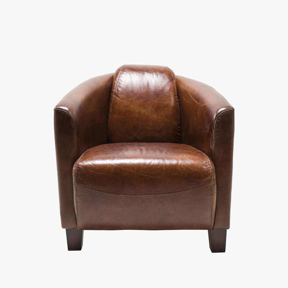 Imposanter, uriger Sessel zum Relaxen. Bezug aus feinstem Rindsleder. Abschalten und wohl fühlen! Als Serie erhältlich.