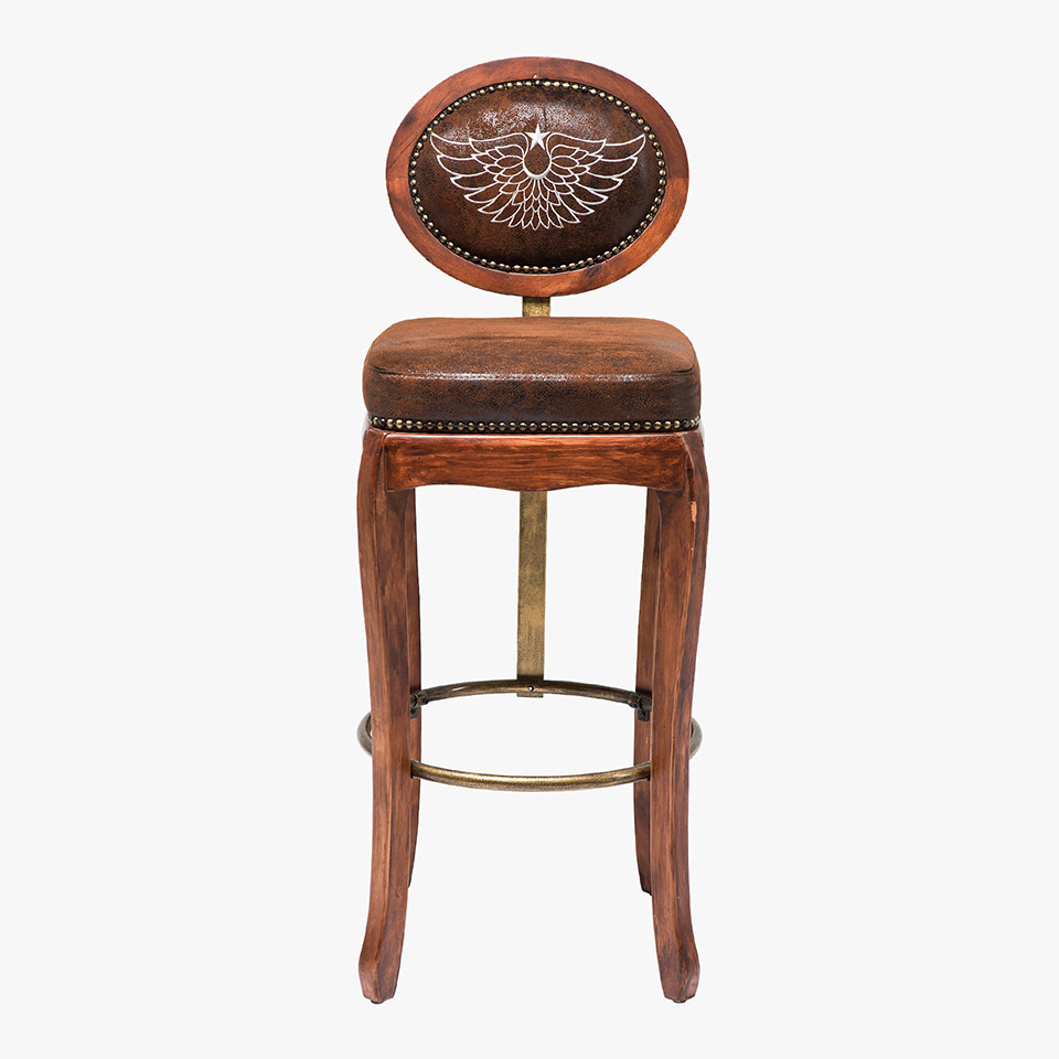 Stilvoller Barhocker in Vintage Optik. Die Messingdetails, Nieten und die edle Stickerei verleihen ihm eine authentische Note.